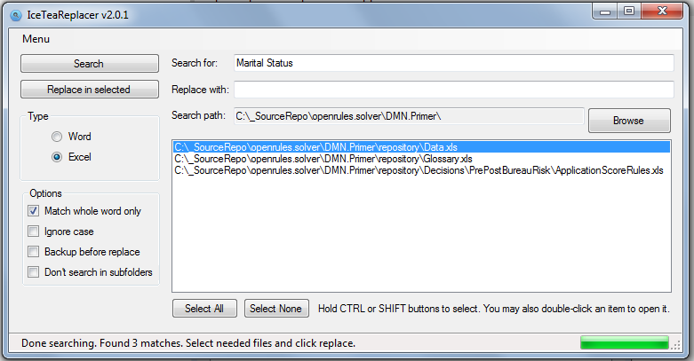 I believe that OpenRules users will find that a new free tool called “IceTeaReplacer” can be very useful for doing search&replace in OpenRules repositories. Here is a functional description from their website: