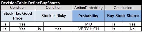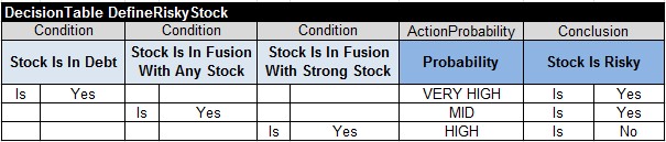 Below are more practical examples from the financial domain. The first decision table defines if a stock is risky: