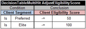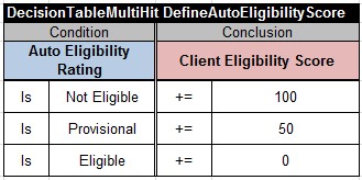 The default rating “Eligible” may be overridden inside this multi-hit decision table.