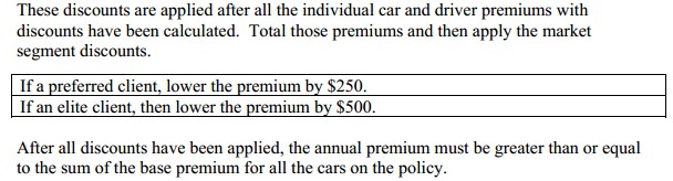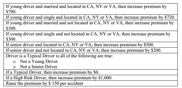 The specification states how to calculate a driver premium for each driver in the client’s policy: