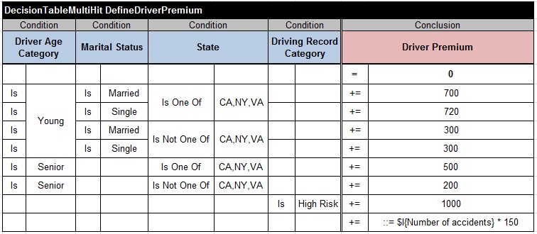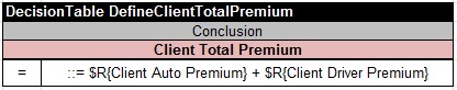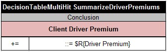 We will need the following decision tables to accumulate Client’s premiums from different cars and drivers:
