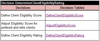 Now the final decision “DetermineClientEligibilityRating” simply executes decisions described above in the sections 1.1, 1.2, and 1.3: