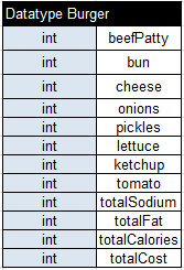 To complete and execute this decision model we need to define a data type Burger