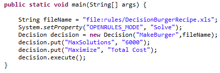 You will find the entire working project “DecisionBurgerRecipe” in the next release of OpenRules Solver.