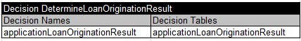 I created a new file “LoanOriginationDecision.xls” that contains the following table: