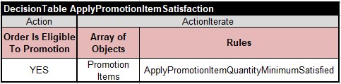 We need to execute this table for each promotion item and for each order item. To organize such iterations we can use OpenRules decision tables with a special predefined action “ActionIterate“. For example, the following decision table