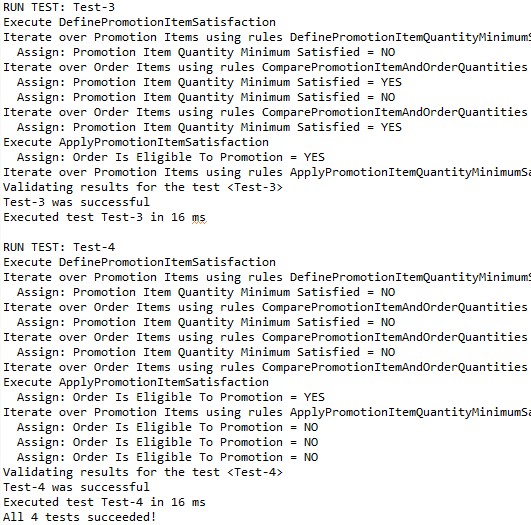 Now we can execute our decision model against the above 4 test cases. Here are the produced results for Tests 3 and 4: