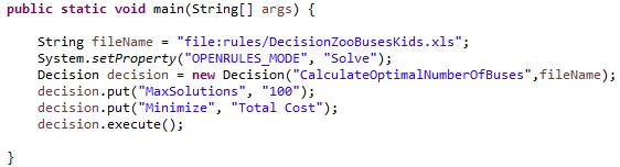 Of course, this decision model does not look elegant if you compare it to models implemented using specialized modeling languages – see for example OPL and DoCplex. However, it uses the basic decision modeling constructs familiar to our business users.