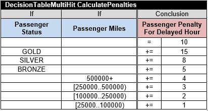 These penalties could be calculated for each passenger (independently to which flight this passenger is assigned) using this decision table: