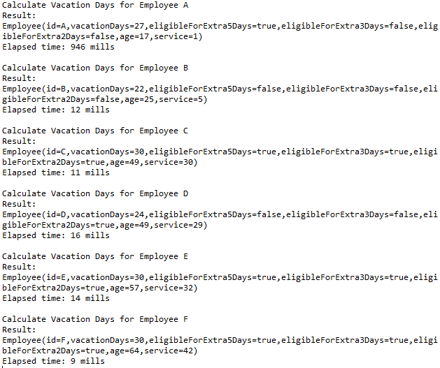 It will start our service “vacation-days” on the localhost waiting for http-requests on the port 8080: