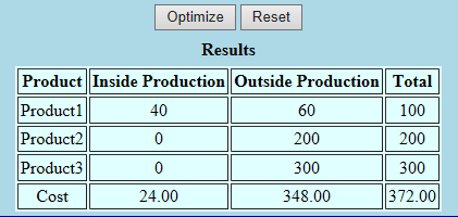 After entering input data, a user should be able to click on the button “Optimize” to generate an optimal solution that may be presented similarly to the following table: