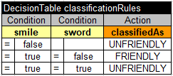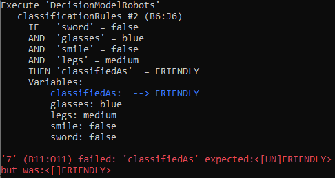 This robot satisfied the conditions of the second rule and was classified as FRIENDLY instead of UNFRIENDLY.