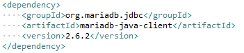 It will automatically add MariaDB’s JDBC driver to our project. To be able to access our database in run-time we need to specify its user and password. It can be done in the standard configuration file “project.properties”: