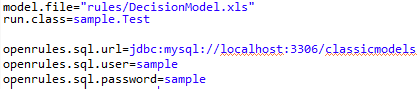 We created an OpenRules project “SampleDatabase” that is the standard project with one simple addition: the configuration file “pom.xml” includes an additional dependency