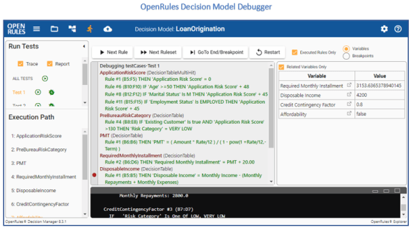 Our Rule Debugger is a component of OpenRules Explorer, an integrated graphical decision management environment. Install it and debug the standard or your own decision models to judge yourself about its power and how easy to use it.