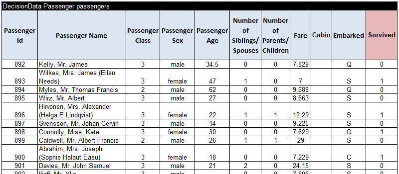 To fit my Test Harness expectations, I needed to modify the last column of this table in Excel by changing “Survived” to “Predicted Survival”: