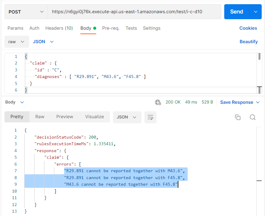 As you can see, it took POSTMAN only 1.3 milliseconds to execute my decision service (or 49 milliseconds including networking).