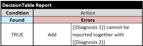 THEN Report the error “Diagnosis 1 cannot be reported together Diagnosis 2”