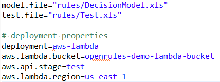 And finally, I decided to deploy this model as AWS Lambda function and test it from POSTMAN. To do this, I added deployment properties to the OpenRules configuration file “project.properties”: