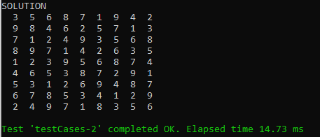It will print a found solution, e.g. this is a solution for the test-instance: