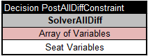 First of all, all Seat Variable should take different values from 1 to Last Seat, and we may express this constraint in the following table: