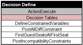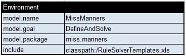 Main Decision. The will rely on the default method “DefineAndSolver” to invoke both tables “Define” and “Solve” as defined by the property “model.goal” in the Environment table: