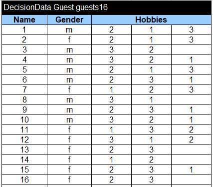 Problem Definition. Let’s start with the provided test data for the party of 16 guests converted to the OpenRules format in Excel file Test.xls: