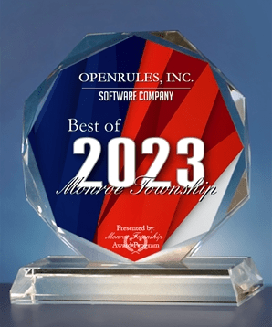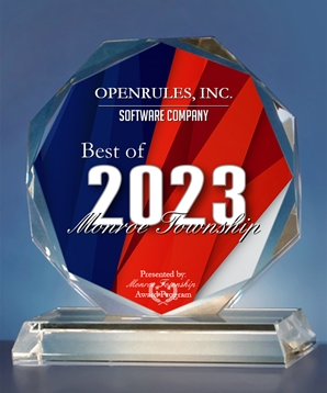 September 3, 2023 — OPENRULES, INC. has been selected for the 2023 Best in the Software company category by the Monroe Township Award Program. Press Release