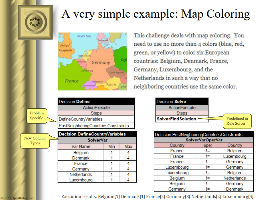 DecisionCAMP-2023 is now a history. As the Chair of this popular annual decision-management event, I published my fresh impressions after 3 days of interesting presentations and discussions. In this post I will describe the key ideas behind OpenRules presentation “Declarative Decision Modeling with Rule Solver”. You may watch its recording.