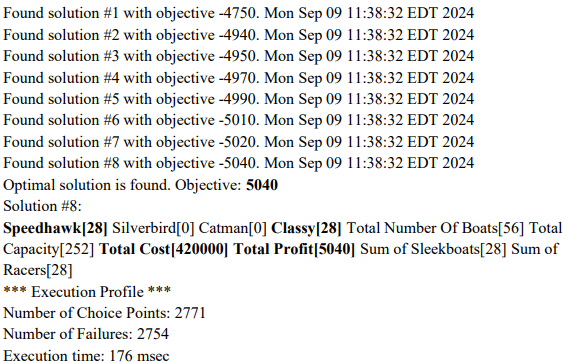 When we executed this decision model using the standard file “test.bat”, it produced the optimal solution: