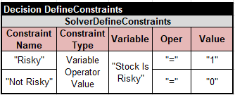 Using this variable, I can define two constraints, “Risky” and “Not Risky”: