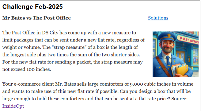 Then I decided to ask GenAI to produce a solution for this challenge using JavaSolver API. I was a bit surprised that Copilot is quite familiar with JavaSolver It quickly generated for me a Java program for a simple Arithmetic problem similar to this one. Then I gave the text of this Challenge in plain English, and Copilot generated a very good working solution for this challenge as well! Here it is: https://dmcommunity.org/wp-content/uploads/2025/03/challenge2025feb.copilot.pdf