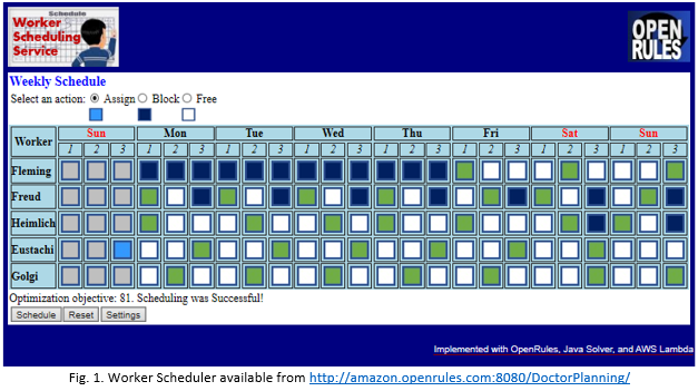 There are already several good responses to the DMCommunity’s April-2020 Challenge “Doctor Planning”. Below I am describing how I tried to use this challenge to create a complete decision optimization service. I ended up with a working Worker Scheduler that shows a solution for this particular challenge in Fig. 1 (click to open):