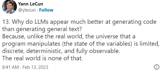 ChatGPT has the public excited, but the experts are reserved in their praise. Thinking about a practical application of the Large Language Models (LLM) to decision modeling this quote from LeCun caught my attention:
